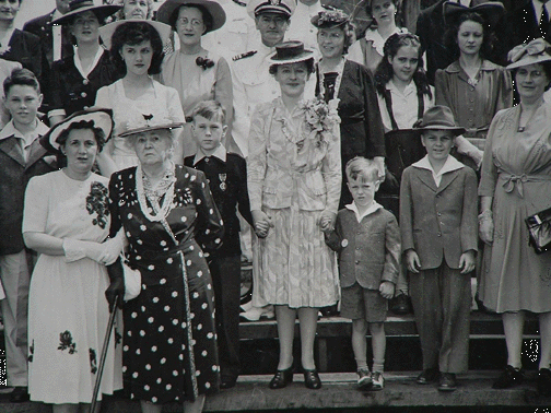 My dad (wearing the Purple Heart), Howard R. Healy, Jr., was only 8 when he lost his dad. Here he is seen at the launching of the USS Healy DD-672 on July 4, 1943 Click Here or on picture for a larger detail and the full group